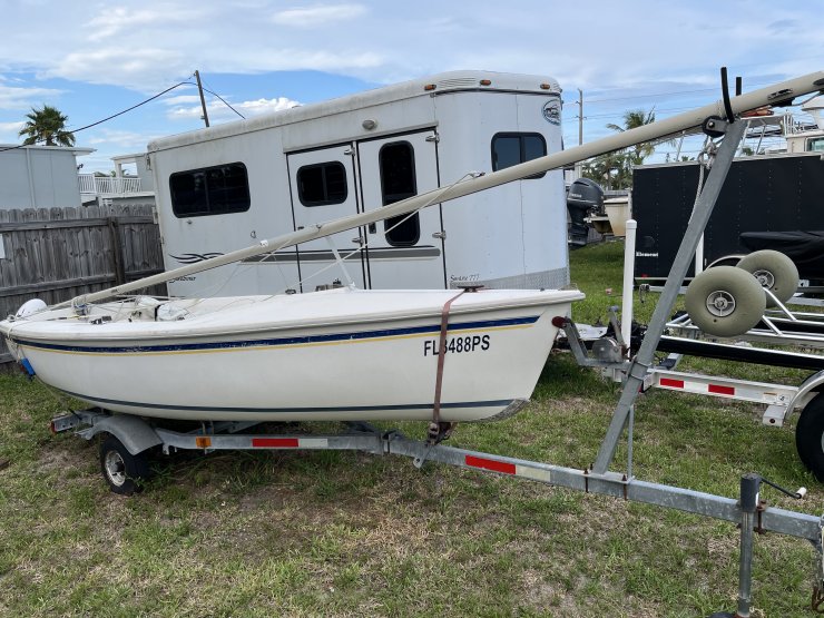 For sale is a beloved Catalina Capri 14.2 sailboat.