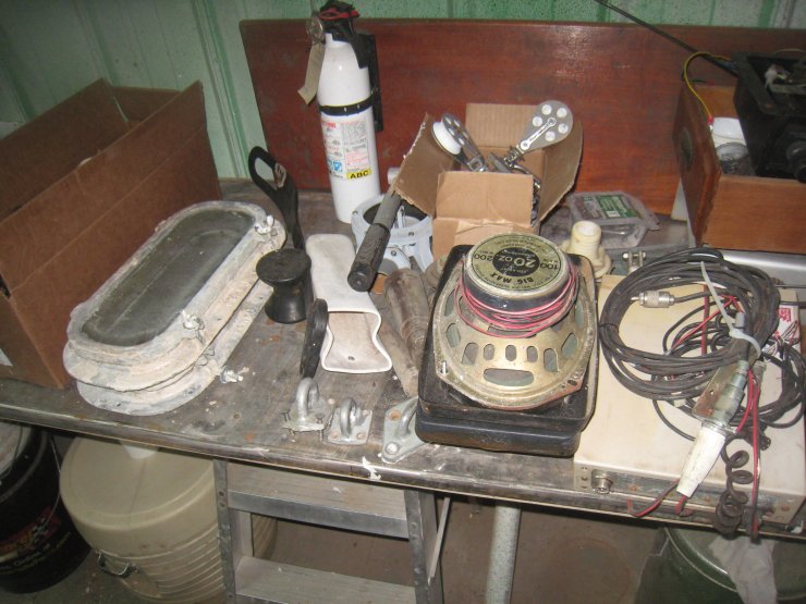 Large assortment of boat parts from a Cal 29. May fit other boats of similar size. Winches, hatch, deck organizer, pulleys, stainless steel fittings, thru hauls, etc.